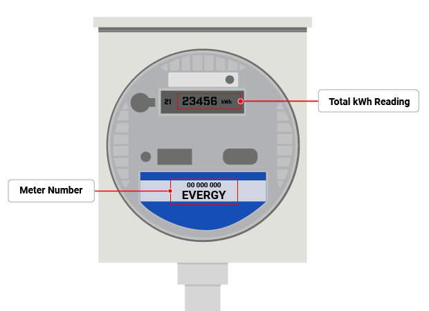 One of these displays the total kWh (kilowatt hours) on your meter. This is the number you'll report each month.